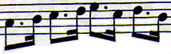 Deux doubles croches valent un demi temps ; quatre double croches valent un temps : Exemple :