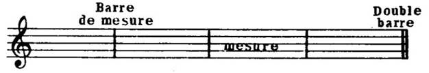 Un morceau de musique se divise en parties égales appelées « mesure ». Chaque mesure se divise à son tour en parties égales qu’on nomme « temps ». La mesure est l’espace compris entre deux barres de mesure.
